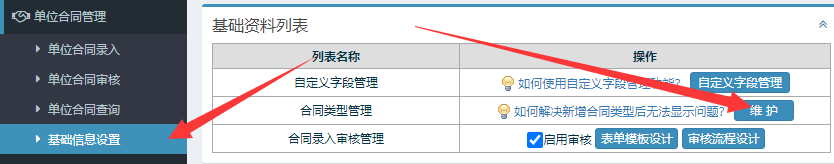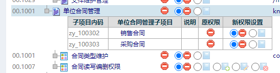 检查权限设置,下方表格内就是合同类型,需要分配权限才能看见: