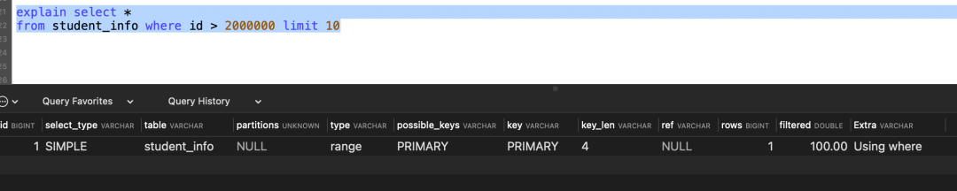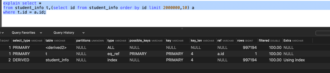 from student_info t,(select id from student_info order by id limit 2000000,10) a