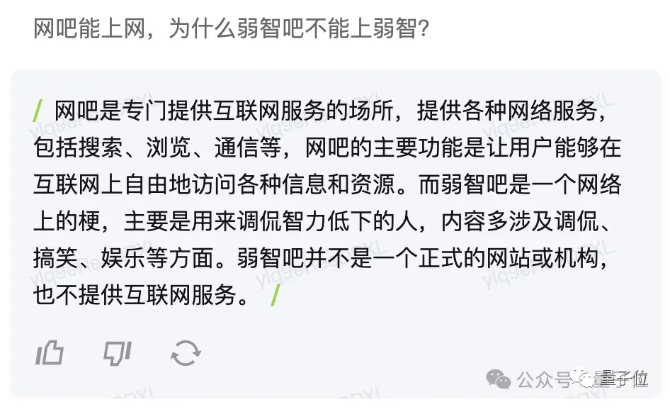 另一个原因是弱智吧数据文本质量很高,用词准确且简洁。 千言万语汇成一句话:把弱智吧只当简单的段子合集真的是严重低估了它的价值! 雀食,要不此前弱智吧问题也经常被大伙儿用来测试大模型呢。 事实上从ChatGPT诞生之初,弱智吧就深度参与了大模型的发展,可以算是这一波AI浪潮的重要见证者了。 一开始只是网友拿来拷打AI,搞搞节目效果。 后来大家发现,弱智吧问题中充满陷阱,刚好可以用来分辨AI能力高低。 还记得23年初那会儿,各家大模型第一版还不太能很好应对这类问题,如2023年3月的文心一言: 后续版本也渐入佳境了,如2023年8月的文心一言: 直到今天,弱智吧问题都是每个新发布大模型都必须要过的一关,被戏称为弱智吧Benchmark。 △秘塔写作猫 △Inspo 原文链接:https://www.51cto.com/article/785470.html 该文章在 2024/4/29 17:55:50 编辑过 |