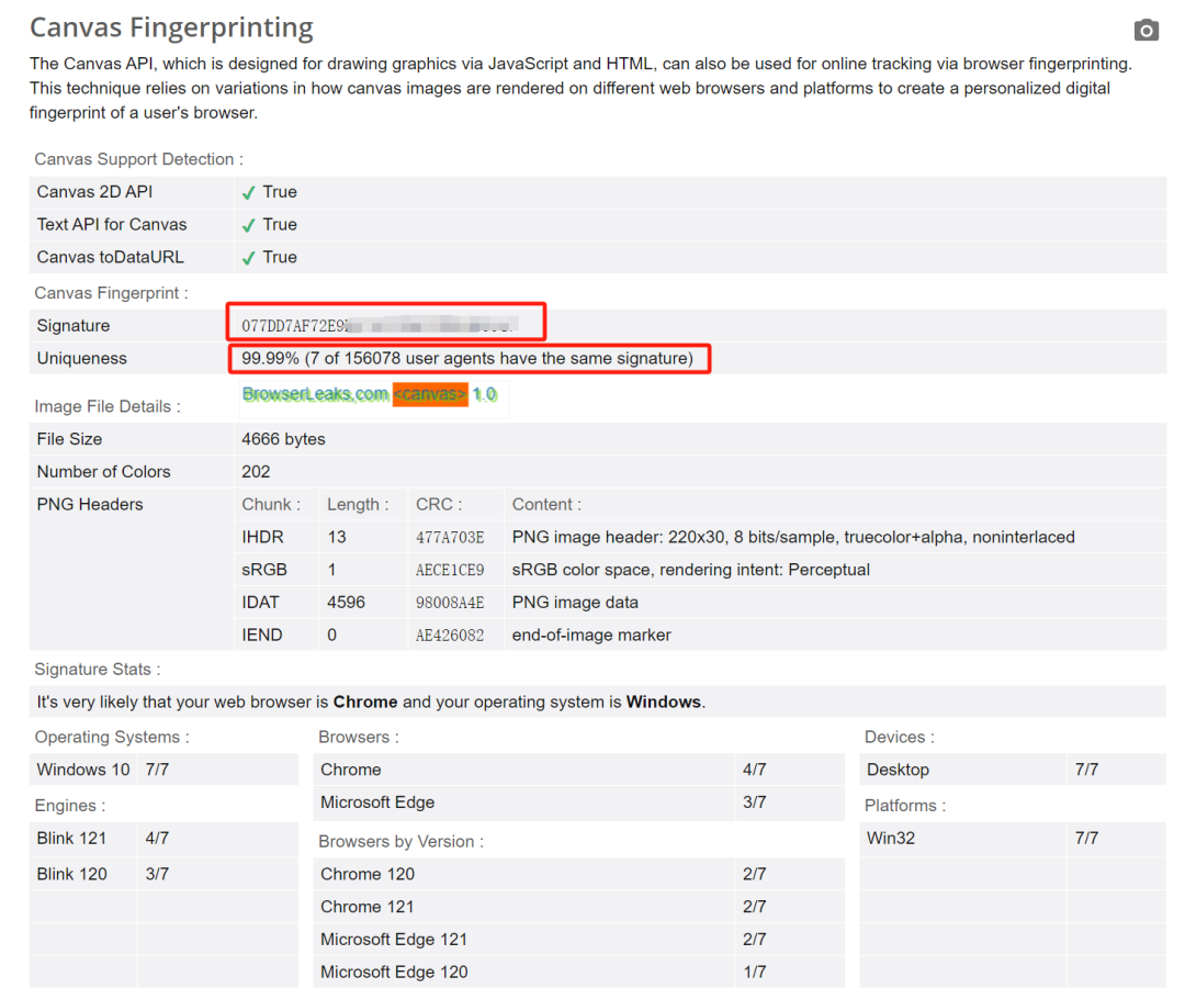 • 不同的浏览器、操作系统、cpu、显卡等等,画出来的 canvas 是不一样的,甚至可能是唯一的