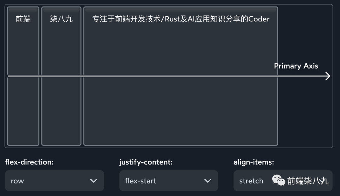 「Flexbox 中的一切都与主/交叉轴有关」。例如,justify-content将沿主轴分布子元素,无论主轴是水平还是垂直,它的工作方式都完全相同。
