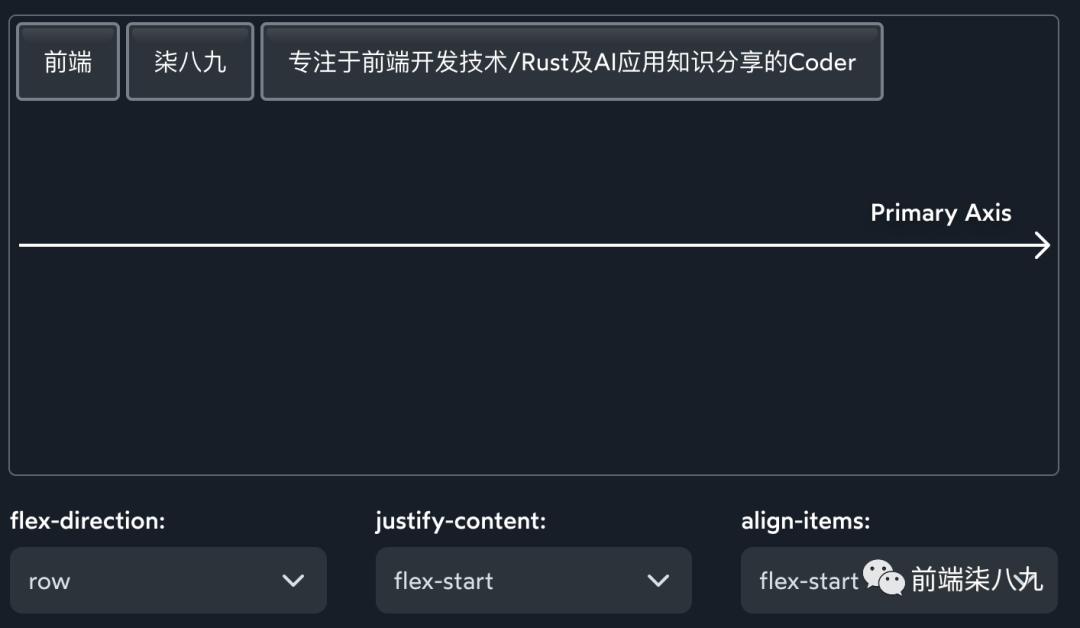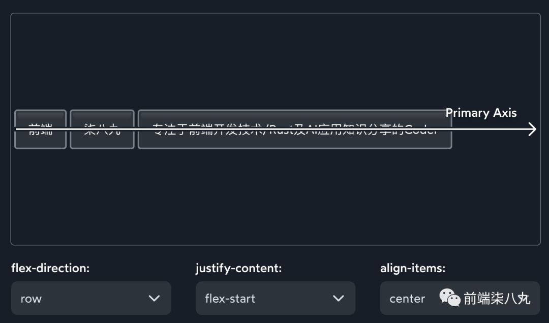 Primary Axis):子元素将「紧密」排列在容器的「起始位置」。 - 交叉轴(