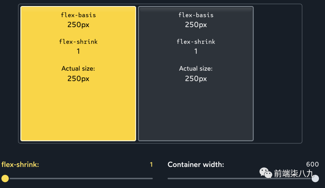 flex-basis和width设置了元素的假设大小。Flexbox算法可能会「将元素收缩到低于这个期望大小」,但「默认情况下,它们将始终按比例缩放,保持两个元素之间的比例」。