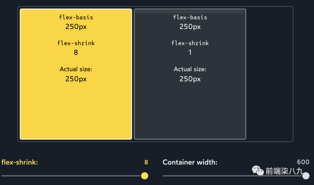 ❝「绝对值并不重要,一切都取决于比例」。如果两个子元素都具有flex-shrink: 1,每个子元素将支付总亏空的 1/2。如果两个子元素都增加到flex-shrink: 1000,每个子元素将支付总亏空的 1000/2000。无论如何,最终效果都是相同的。