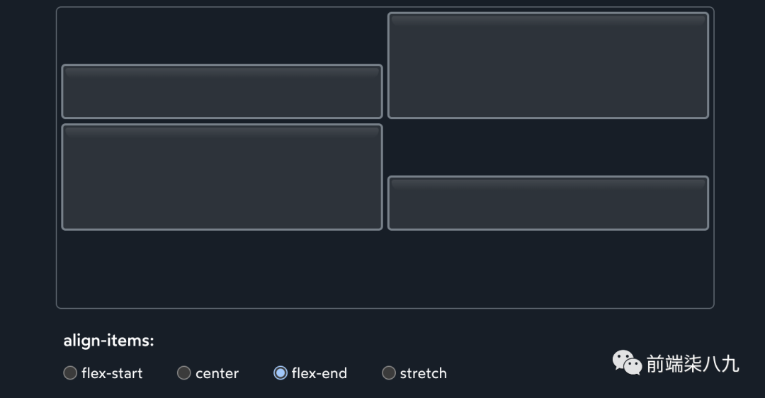 在align-items中,有一些与justify-content相同的选项,但并「没有完全的重叠」。