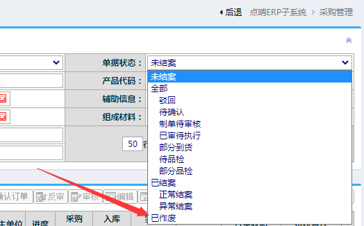 【点晴模切ERP】采购订单作废的订单在那里找出来?