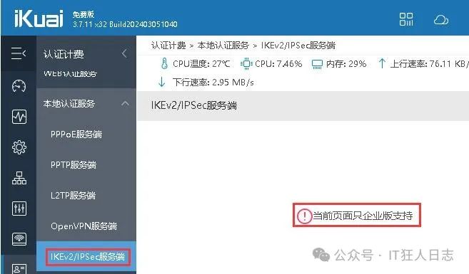 很多无线路由器,都早已不支持手动配置静态路由了,而且还不支持VPN,所以第一步就是更换路由器,为便于维护,打算给客户使用爱快路由器,既能满足需求,价格合适。 怎么把爱快路由器配置上网,我就不写出来了,修改Lan口IP地址,填写Wan口的宽带账号、密码,总之非常简单。本文的重点是,在爱快路由器上配置L2TP,使两端的内网互通。 本来习惯用Ipsec VPN,但是非企业级设备,不支持ipsec服务端,所以只能采用L2TP模式了。