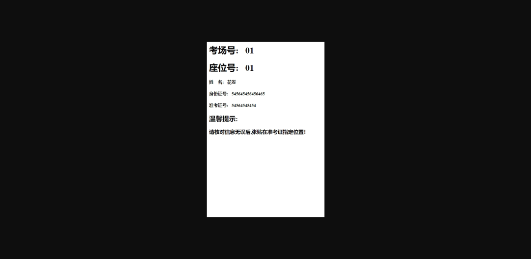<h3>请核对信息无误后,张贴在准考证指定位置!</h3>