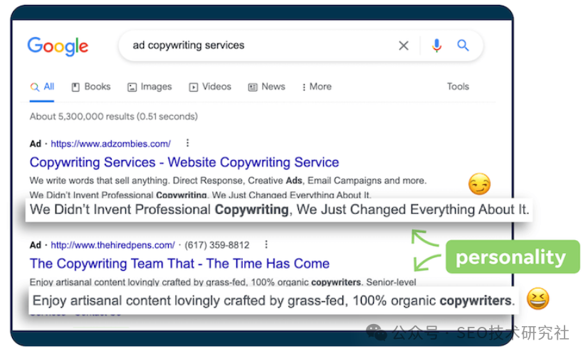 广告内容由于您的质量得分和出价策略会受到广告内容的影响,因此您选择的文案和图片是 PPC 的重要组成部分。 有很多方法可以优化 PPC 广告并提高您赢得出价和获得点击的机会。简而言之,您需要确保您的广告与出价关键字的意图相匹配,并确保它们在拥挤的搜索页面上脱颖而出。