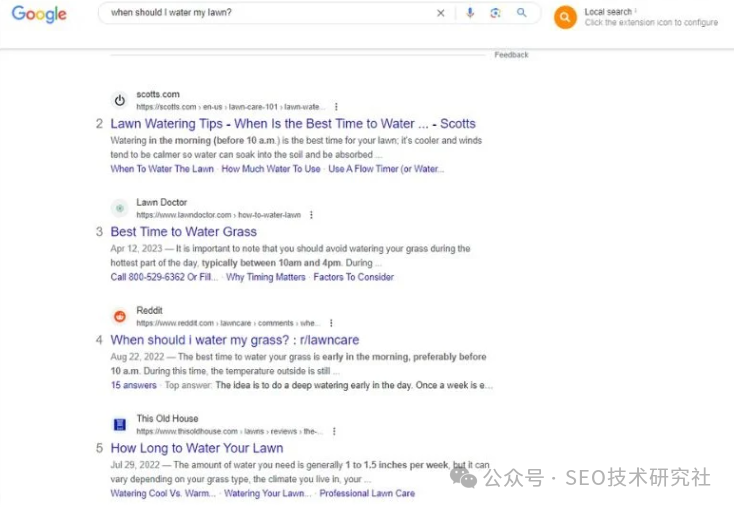 如果你在一个竞争激烈的行业工作,没有大量的广告预算,你可以考虑把重点放在自然搜索上一段时间。特别是优化您的 Google 商家资料并列入其他商家目录。 投资回报率 与预算相关的是您需要从搜索引擎营销中获得的投资回报率。您所做的投资需要留出利润空间。 假设您销售的产品价格为 20 美元,并且 PPC 广告每 100 次点击就会进行一次销售。如果每次点击的平均费用为 2 美元,则进行 200 美元的销售将花费 20 美元。 在整个网站中战略性地放置一些相关的有机关键字,以及一个以SEO为重点的博客,将是更好的投资。 时间安排 并不总是可以等待 SEO 的长期好处发挥作用。这就是付费搜索真正闪耀的地方。无论您是新企业、推出新产品,还是只需要在您的地区快速发展,PPC 广告都会将您跳到搜索引擎页面的顶部并立即提供高意向流量。 也就是说,如果您有足够的带宽来同时执行这两项操作,则可以在运行 PPC 广告时发布一些内容并执行其他页面 SEO 步骤。 有针对性的关键字 不同类型的关键词适用于不同的搜索营销方法。 SEO是信息关键词的更好策略,因为搜索它们的人表现出学习的意图,而不是购买。另一方面,暗示购买意向的竞争激烈的关键字非常适合 PPC 广告。 这是一个SEO与SEM的例子。假设您经营一家草坪护理公司。在“when should I water my lawn”这个词上排名靠前会很棒,因为搜索该关键词的人可能有草坪,并且有兴趣让它们看起来不错。 但请注意,该关键字在结果页上的广告并不多。
