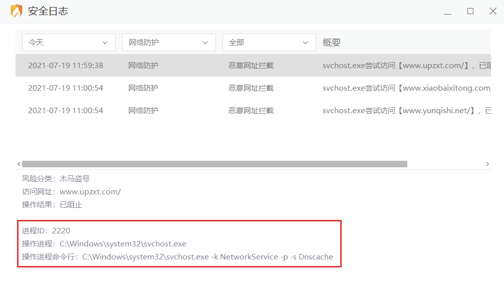 通过微步在线威胁检索工具发现两个可疑的 svchost 进程存在恶意 IOC 字符串在日常分析中,我们经常会通过抓取恶意域名请求来定位恶意进程,如果定位最终指向 svchost.exe 进程,而我们在查看进程命令行时,可以看到svchost -k NetworkService -p -s Dnscache 这样的参数,其实这是系统的 DNS 缓存机制:大部分应用程序进程进行域名解析时,会通过 RPC 传递到 Dnscache 服务进行 DNS 缓存(ipconfig /displaydns的结果就是他的功劳),而这两个服务都是通过 svchost.exe 启动的,因此并不代表该进程就是恶意进程。