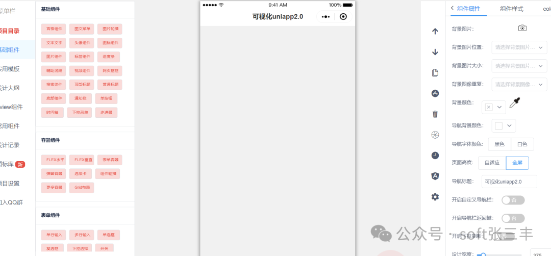 UniApp 2.0的可视化开发工具UniApp 2.0的可视化开发工具是一款旨在提高跨平台应用开发效率的软件。它支持微信小程序和H5页面的开发,并能直接生成UniApp代码,实现了真正的跨平台开发。这个工具的主要特点包括: 1. 拖拽式界面设计:提供了丰富的组件库,包括基础组件和表单组件等,开发者可以通过拖拽的方式快速构建应用界面。同时,工具还提供了丰富的样式设置选项,如字体、背景、边框等,以便开发者打造出独一无二的界面效果。 2. 一键生成代码:在界面设计完成后,工具可以自动生成对应的UniApp、H5和小程序代码,减少了开发者的编码工作量,并确保了代码质量和一致性。 3. 模板保存与复用:开发者可以保存自己的设计模板,方便日后继续设计或复用,从而减少了重复劳动,提高了开发效率。 此外,UniApp 2.0可视化开发工具还引入了许多新特性,如代码优化、组件管理与复用、轮播图与宫格组件的丰富性、搜索组件的个性化、在线预览与响应速度优化、文本文字组件的变量绑定、免费的登录页面模板、Grid布局的改进以及友好的可视化右侧事件绑定等,这些特性进一步提升了开发效率和用户体验。