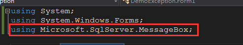 msgBox.Text = "异常信息!"; //获取或设置要在异常消息框中显示的顶级消息的文本