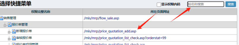 然后搜索出要添加的菜单,直接点中即可,如下图: