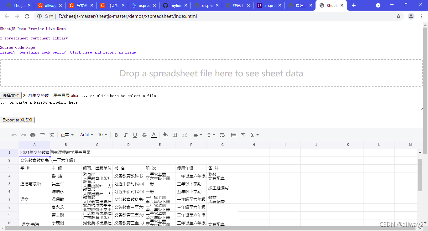<title>SheetJS + x-spreadsheet Live Demo</title>