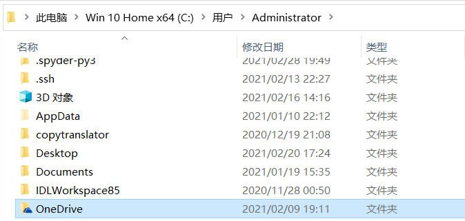 其中,自动同步的OneDrive文件夹的实际位置取决于初次配置OneDrive帐号时用户的选择,例如我将这一文件夹放置于
