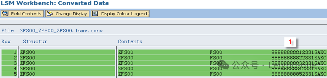 (1)CATT:Computer Aided Test Too (计算机辅助输入测试) (2)BDC:Batch Data Communication(批处理) (3)LSMW:legacy system Migration workbench(遗产系统迁移工作台) 对于一个新人,LSMW 的困难主要在于: 1、对LSMW本身的认识和理解 2、业务操作面的困难。 这个是在录屏的过程中使用具体的TCODE去进行实际业务处理的录屏过程方面的困难。 首先,有些事务码录屏时的界面和我们平时使用的界面并不完全一致,这就要求对前台的业务处理比较熟悉; 其次,录屏过程中可能会有很多的无关字段,甚至因为无关操作触发的更多无关的东西,如果对这些不够熟悉,则会在录屏结果中看到凌乱复杂的字段信息。 也就是说,在录屏前,你要基本保证自己对业务处理过程足够熟悉,且要精简,不要有过多无关操作,最后一定要触发保存;也就是说,你录屏时操作的一条数据,它本身应该是已经完成且保存了。另外,一个教训是,录屏时尽量选择直接手动输入录屏,避免复制,指SAP的复制功能,不是Ctrl+C/V,因为可能会丢失一些字段导致录屏失败。 以建立会计科目(Tcode:FS00)为例。执行事务代码:LSMW,如下图: ![]() 点击创建,输入project项目编码和描述;或者选择已有的项目,在已有项目下面创建。选择或者创建对应的子项目Subproject。创建项目包Object。 输入Project、Subproject和Object后,点“执行”按钮或回车,进入LSMW操作界面,可以看到LSMW共有14个单独步骤,从Maintain Object Attributes->Run Batch Input Session,如下图。接下来,按菜单操作就可以了。 ![]() 注:Project/Subproject/Object取名不能太长,否则在第7步”Specify Files”可能出现文件长度错误。 1、 Maintain Object Attributes第一步的主要任务实际上是创建录屏Recording。 ![]() 如上图,首先选择“Display<->Change”进入修改状态,再选择“Batch Input Recording”, 一定要在该字段填入Recording名,由于该Recording可能还并不存在,因此,需要选择上图的[1]的标志;或者,点击菜单go to--recordings,如图: ![]() go to recording后显示如下: ![]() 选择新建按钮,Recording输入“ZFS00“,确定后输入Tcode:FS00,开始录屏。 注:Recording输入的“ZFS00“就是Tcode:SM35显示的会话名称,在第13步”Create Batch Input Session”将产生这个会话。 ![]() 录屏结束后,如下图,系统自动列出操作所有操作屏幕和数据字段。 ![]() 双击数据字段,如科目,输入字段名称SAKNR(保持和SAP屏幕字段一致,也可叫KJKM)和数据字段描述。为批导涉及的所有字段都建立好字段名称和字段描述。 ![]() 注: (1)可以点”Default All”按钮取所有字段的默认值。 2、 Maintain Source Structures建立一个源结构。 ![]() 定义我们自己要以TXT文件提供的数据源的格式的名称,注意是数据源的名称,相当于一个结构的名称,不是文件名也不是字段名。接下来将为该结构建立批导字段。 3、 Maintain Source Fields定义数据源里面各个字段的名称和文本、长度等信息,相当于确定结构里的各个字段。 ![]() 如上图,按图-[1]的”新建”按钮,出现图-[2],填入字段名称、描述、长度和字段类型,假设批导需要上图-[3]的这些字段,则批导的Excel(最后可存为制表符为分割符的Txt文本)数据内容必须按这些字段的顺序组织,如果字段不对,可以使用上图-[4]的两个按钮调整顺序。 强调:最好保持Source Fields的顺序、录屏字段变量顺序和批导数据文件字段的先后顺序完全一致。 注:创建”Source Fields”,如果选上Selection Parameter for “imput/ConvertData”标志,表示该字段允许从批导文件上载时可根据该字段进行刷选。 一个批导excel数据组织示范图,可以看到和Source fields是按顺序一一对应的。 ![]() 上面的excel前2行为注释行,在第7步“Read Data”中可指定数据行从第3行开始,假设本例从第3行开始到第7行,共有5条数据记录行。 此步中,选择下图-[1]的”Table Maintenance”按钮,可看到如下图-[2]的集中维护方式。 ![]() 小技巧: 这里的字段长度必须大于实际表字段的长度,数据类型和长度最好匹配,要知道一个将批导字段的数据类型和长度,可以采用下面的3个步骤: (1)在操作屏幕对着该字段按”F1”帮助键,然后选择下图-[1]的。 ![]() (2)比如FS00操作界面的总账科目字段,可以看到它的字段名称叫SAKNR。 ![]() (3)双击字段名可以知道SAKNR的数据类型为10位的字符型。 ![]() 4、 Maintain Structure Relations定义录屏时产生的结构与我们在2和3自己定义的结构在结构名层级的对应关系,不涉及字段的对应关系,因为5才是字段的对应关系,相当于是SAP把结构名称和里面的字段分开来处理对应关系了。 ![]() 通常的数据迁移实例不应复杂,本例中,由于batch input recording只有1个,所以Source structure已自动默认分配。 5、 Maintain Field Mapping and Conversion Rules定义字段层面的对应关系。 首先,选择下图-[1]的“Source Field”,将批导字段变量和源结构的源字段关联上, 然后选择下图-[2]的”Rule”, 维护字段映射和转换规则,比如可以设置公司代码为有常数(Constant),如果公司代码固定,其实也可以直接在excel都输入固定公司代码。 ![]() Rule一般选择“Transfer(Move)”,表示字段到字段的移动,如下图。 ![]() 这步非常重要!!实际上这步是将录屏ZFS00时的数据字段和源结构做映射,由于源结构在第7步”Specify Files”中将关联上一外部批导数据组织文本文件,也就是说,数据组织文件的内容(字段)将和第3步“Maintain Source Fields”源结构的源字段关联,通过本步骤的映射,即批导录屏字段和外部组织文件的字段关联上了