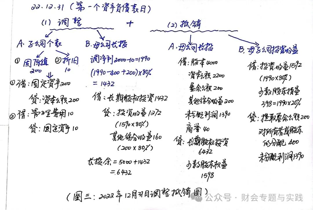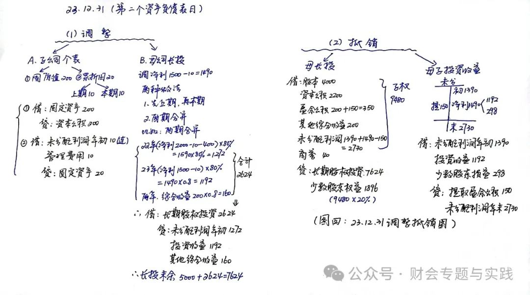 三个时间点调整抵销分录,思路如下手写图二、三、四所示: Ⅲ•【数据计算】