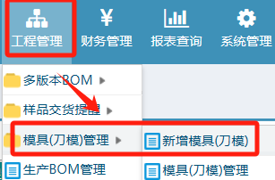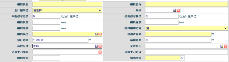 ![]() ![]() 点击进入 如下图: ![]() 首先选择模具类型 如下图: ![]() 然后把下面的资料填写,如果没有的可以不用填(不是强制性填写,有用到就填),有些属于必填项一定要填才能提交。(资料的寿命就是模具管理的重要参数) ![]() 填写完后,提交即可 如下图: ![]()