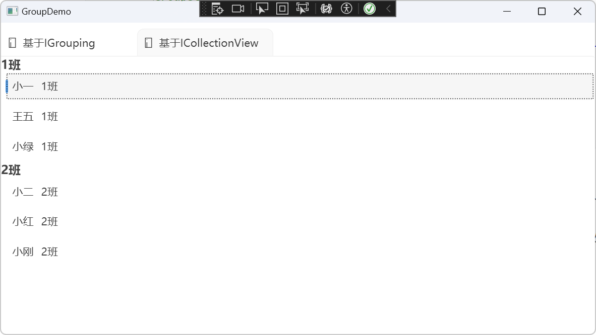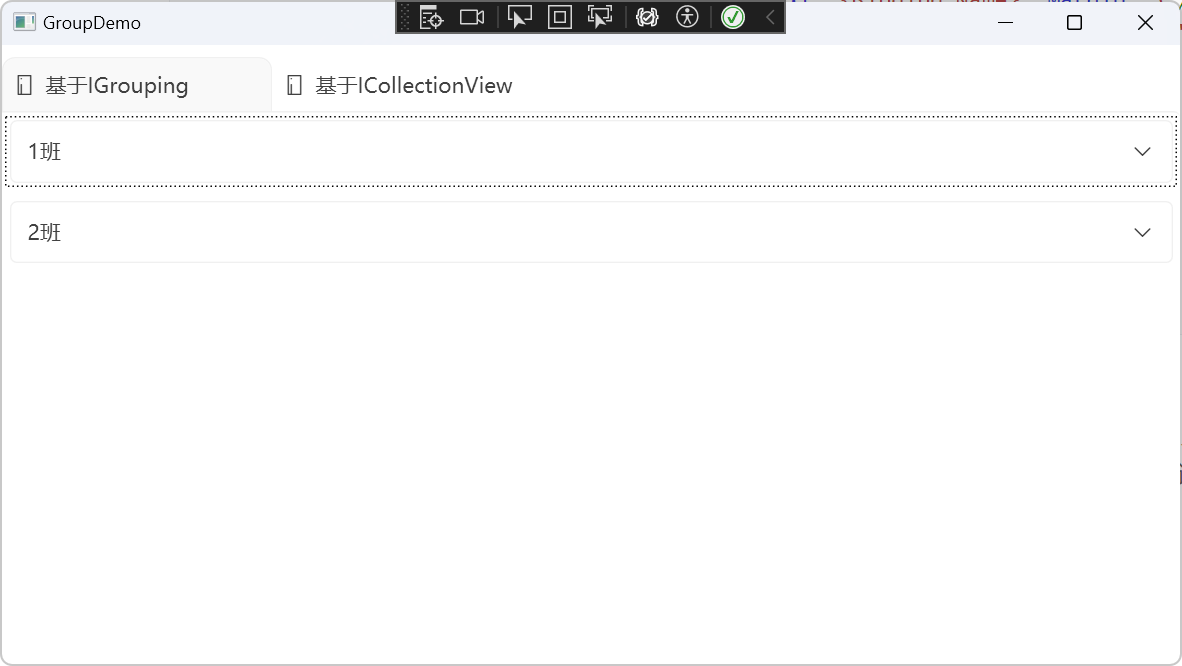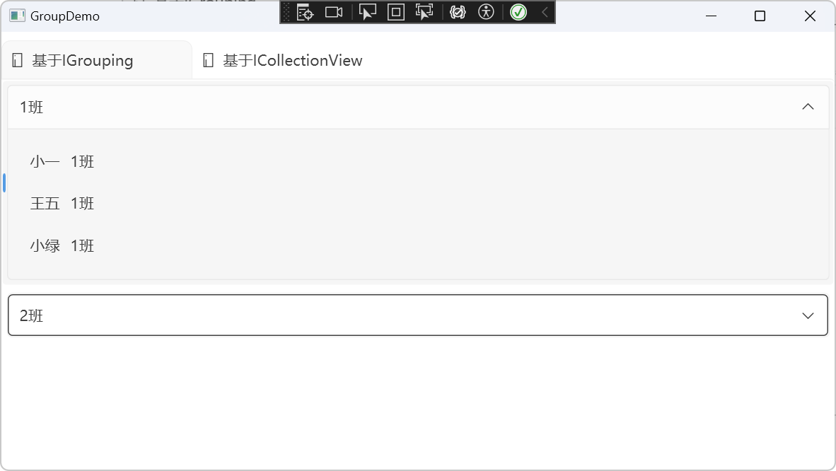 基于IGrouping的方案,在cs代码中,使用LinqGroupBy方法对People集合进行分组。在xaml代码中在ListView的数据模板中使用Expander控件绑定分组的Key属性,在Expander控件中再包含一个ListView控件,绑定每个分组中的数据项。