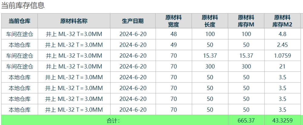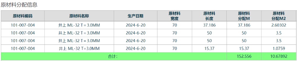 查询后,若需要看详情,可以点击“原材料分配”栏位的蓝色字样查询详细分配数据,如下图: 点击进入后,可看到详细的分配以及现有库存数据,如下图: 点晴模切ERP更多信息:http://moqie.clicksun.cn,联系电话:4001861886 该文章在 2024/7/12 8:49:40 编辑过 |