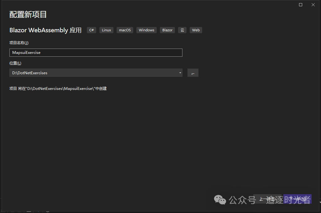 创建名为:MapsuiExercise的Blazor WebAssembly应用。
