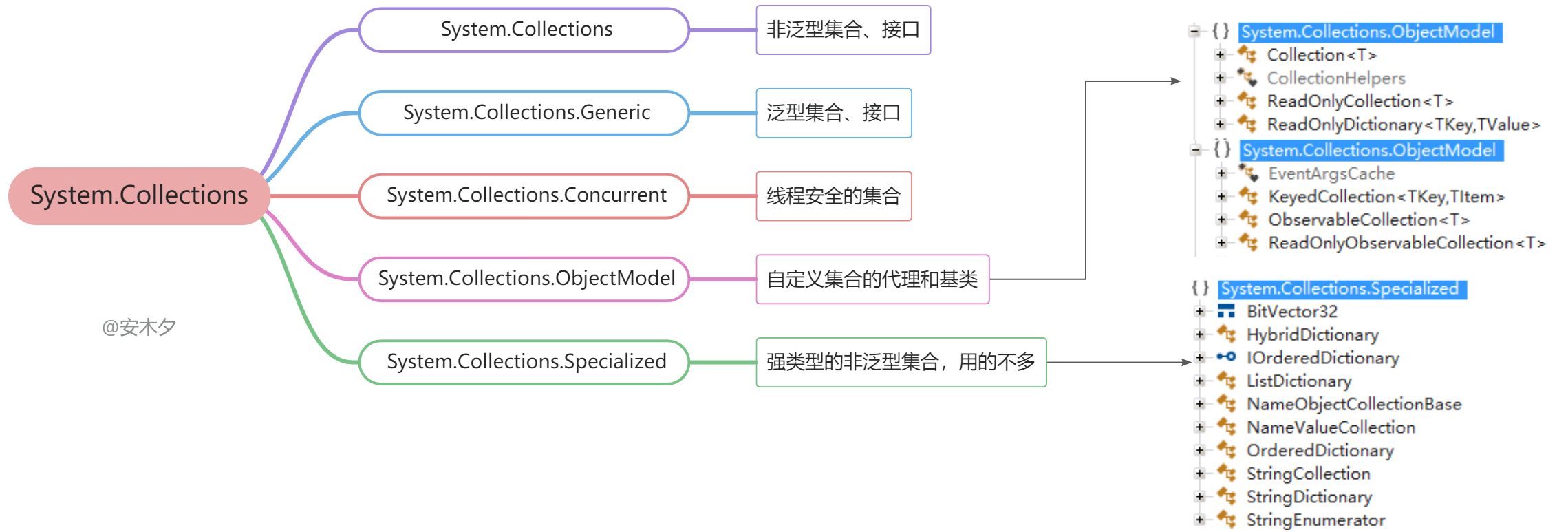 .Net 中提供了一系列的管理对象集合的类型,数组、可变列表、字典等。从类型安全上集合分为两类,泛型集合 和 非泛型集合,传统的非泛型集合存储为Object,需要类型转。而泛型集合提供了更好的性能、编译时类型安全,推荐使用。