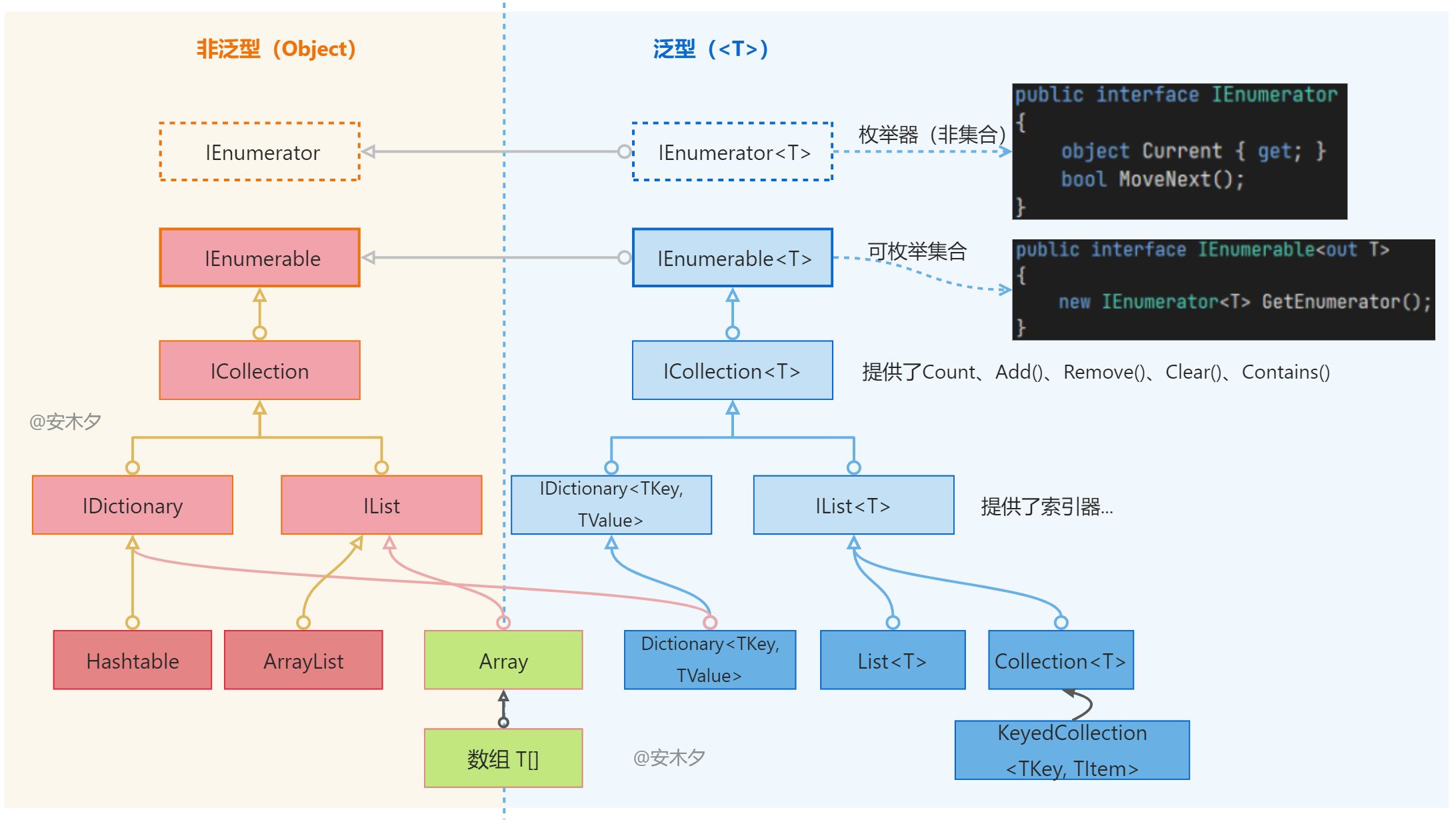 IEnumerableIEnumerable<T>是所有集合的基础接口,其核心方法就是 GetEnumerator() 获取一个枚举器。