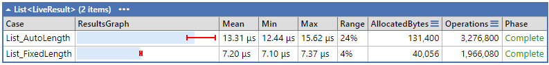 很明显,自动长度的List速度更慢,也消耗了更多的内存。