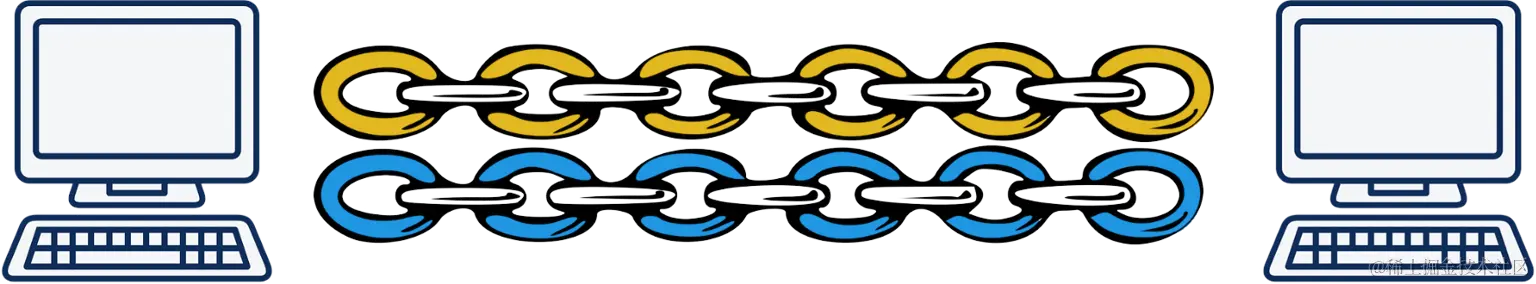 如下图所示,两台设备之间建立的是一个 QUIC 连接,但是可以同时传输多个相互隔离的数据流。例如黄色是一个数据流,蓝色是一个数据流,它俩互不影响,即便其中一个数据流有丢包的问题,也完全不会影响到其他的数据流传输。