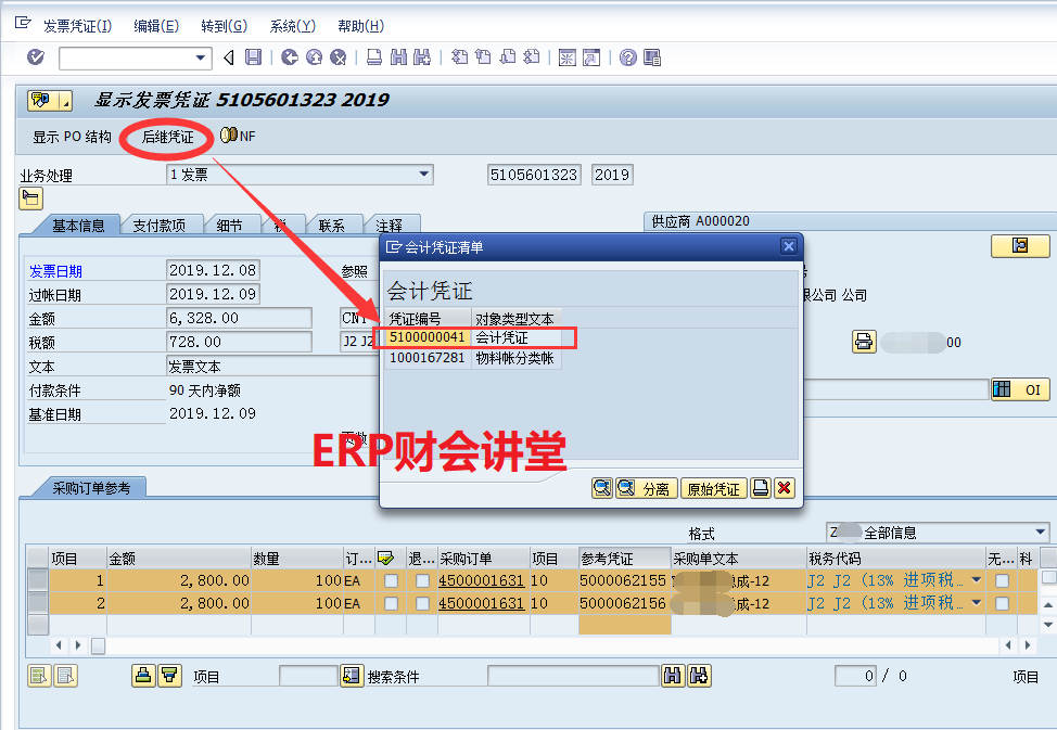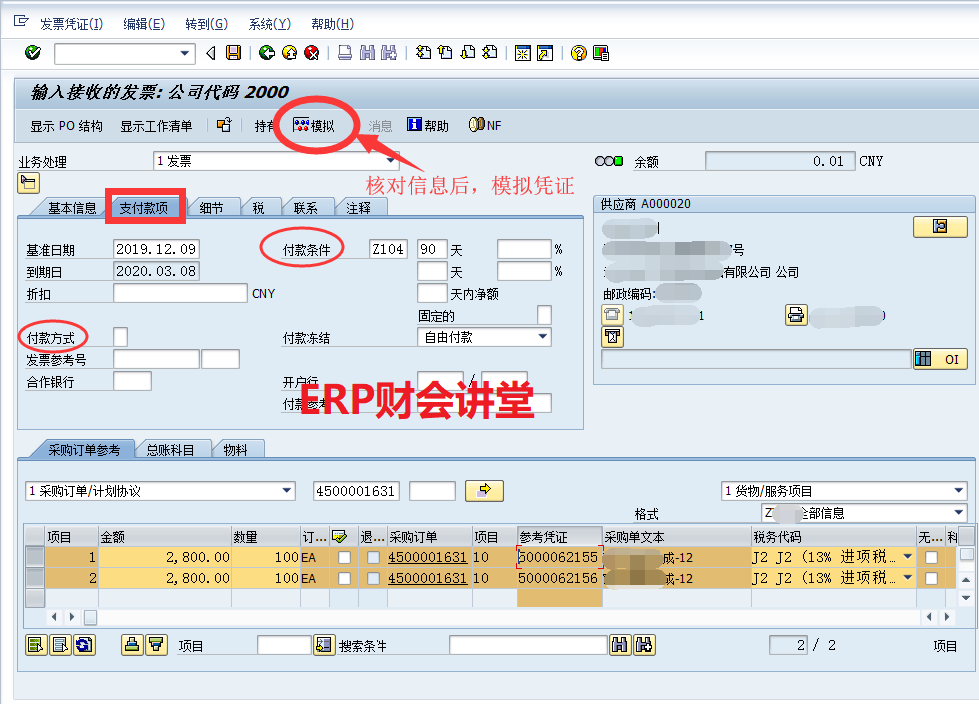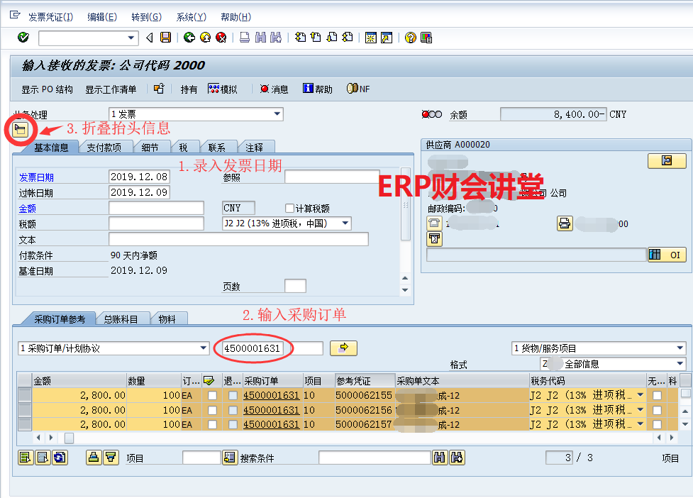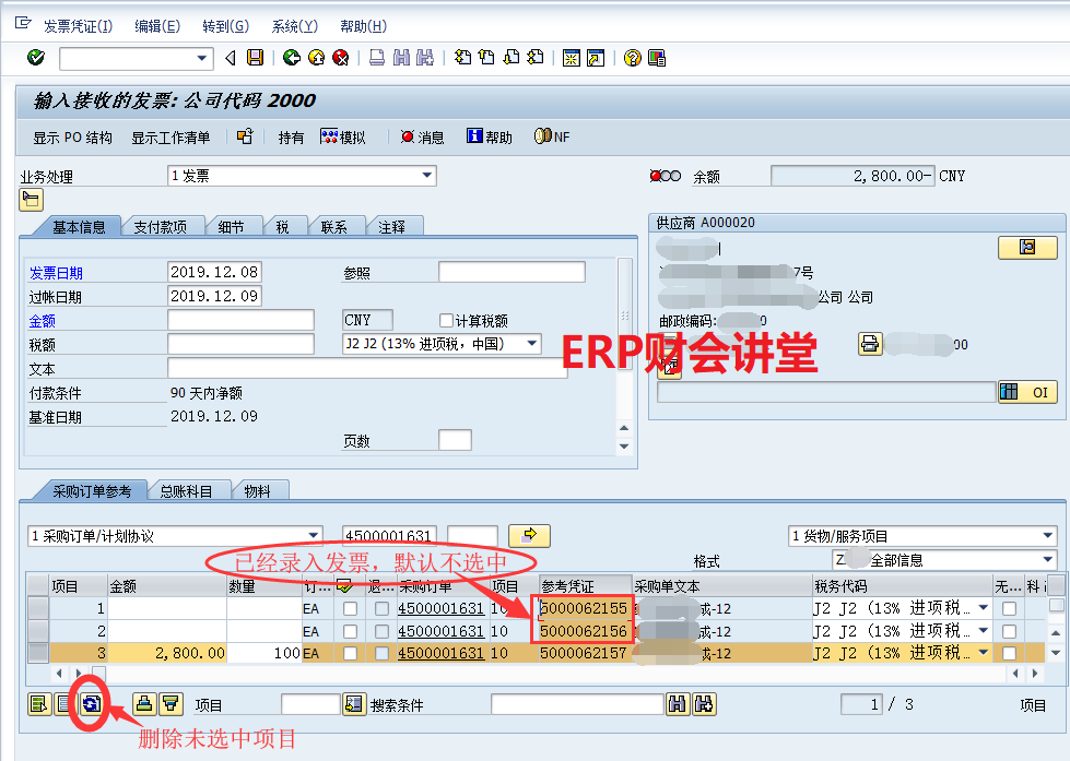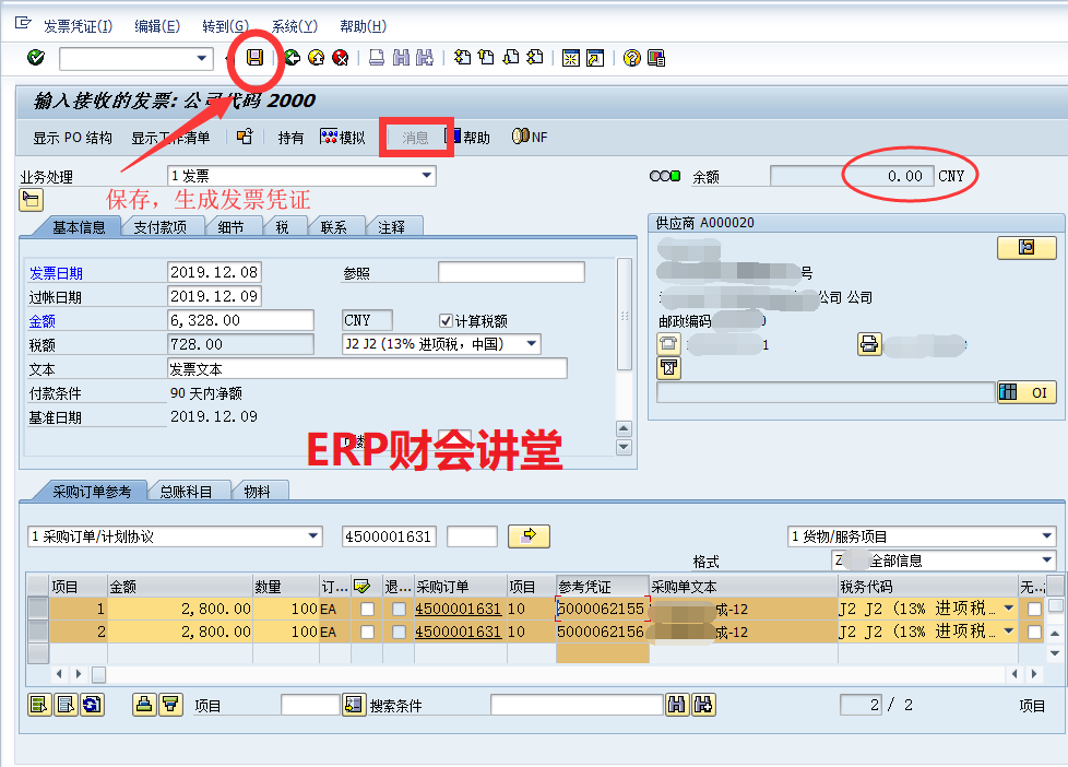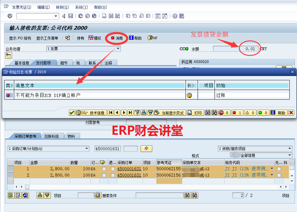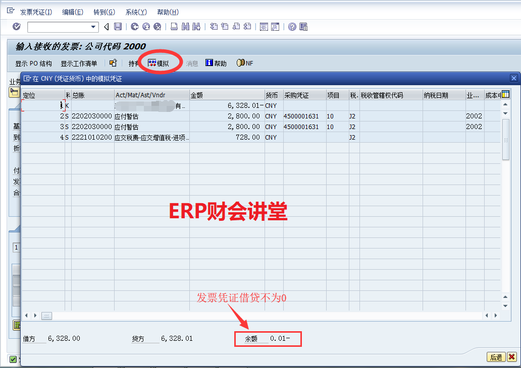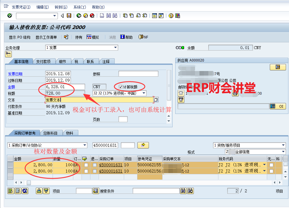 【点晴模切ERP】SAP系统中采购发票校验