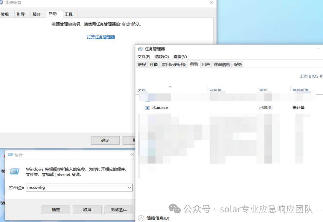 【Win+R】打开运行框,输入【msconfig】命令,在【系统配置】框中单击【启动】选项卡,可查看启动项的详细信息。