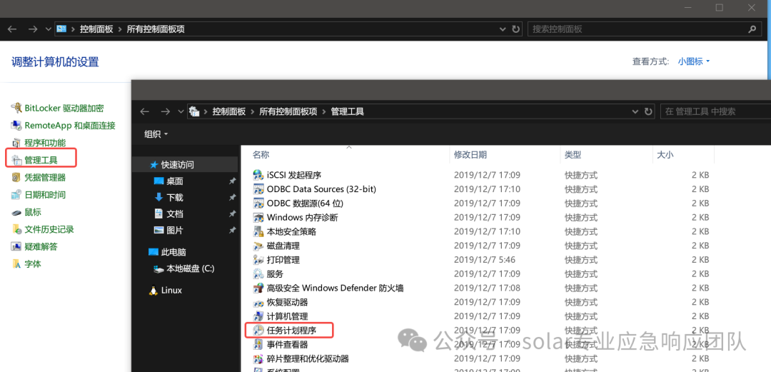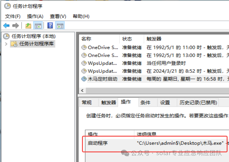 【Win+R】打开运行框,输入【control】命令打开控制面板,点击任务计划程序,查看计划任务属性,便可以发现 木马文件的路径。