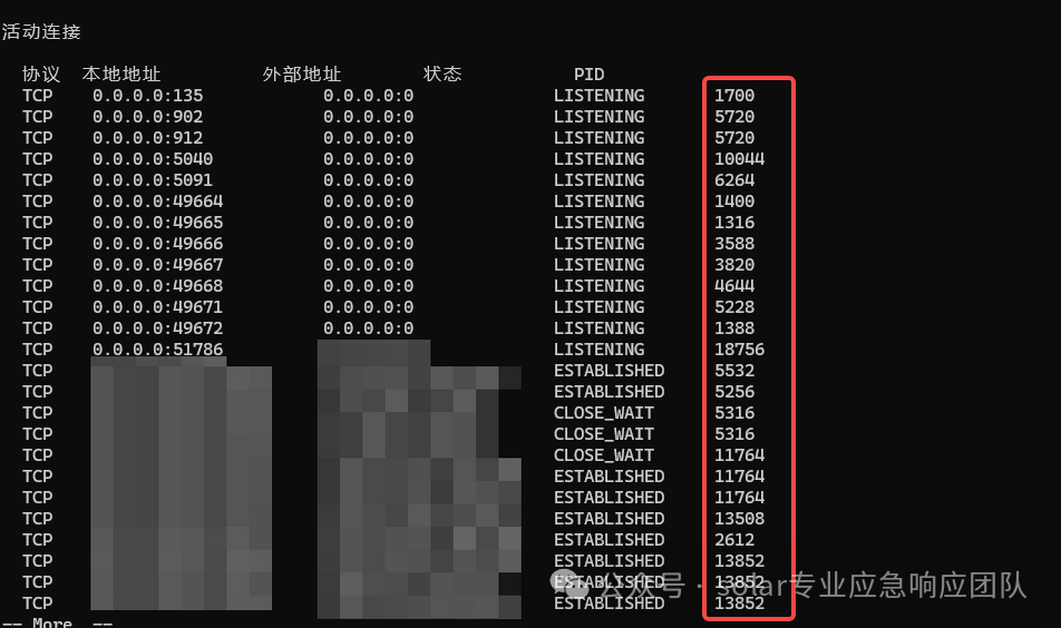 如若确定可疑IP和端口,可使用tasklist命令进行进程定位,快速确认该程序是什么