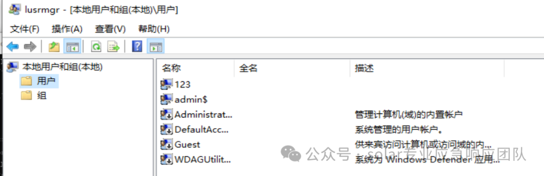 【Win+R】打开运行框,输入【lusrmgr.msc】命令打开本地用户和组,可以看到系统中的所有用户,包括隐藏用户。