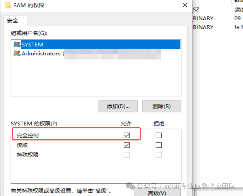 默认无法查看该选项内容,需右键权限,勾选为完全控制后确认,刷新即可看到