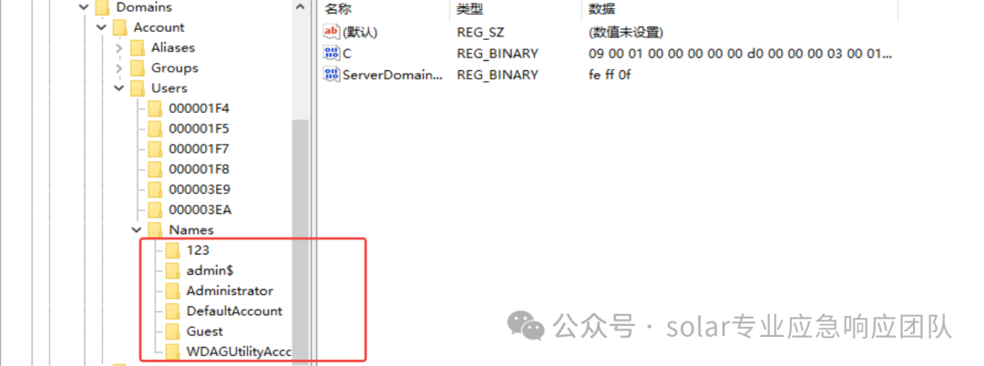 【Win+R】打开运行框,输入【regedit】命令打开注册表,可以看到系统中的所有用户,包括隐藏用户。查找以下路径: