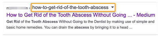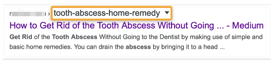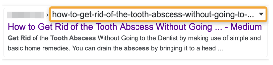 试想一下,你的目标关键词是 “how to get rid of a tooth abscess without going to the dentist”。这不仅拗口(没有双关语的意思),而且在搜索结果中也会被截断: