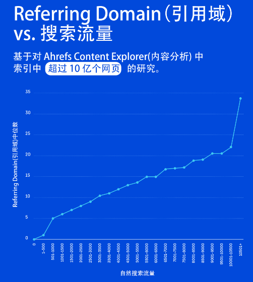 我们对 10 亿多个网页的研究表明,自然流量与链接到网页的网站数量之间存在明显的相关性: