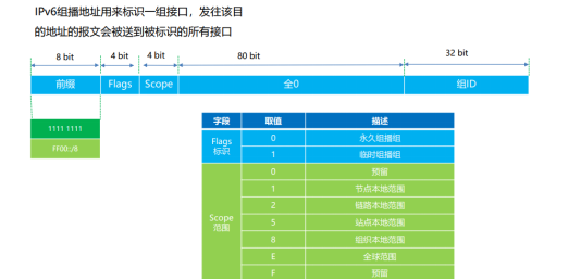 IPv6中没有广播地址(Broadcast Address),使用组播地址代替。