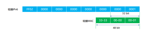 使用组播IPv6地址后32位作为组播MAC的后32位地址。