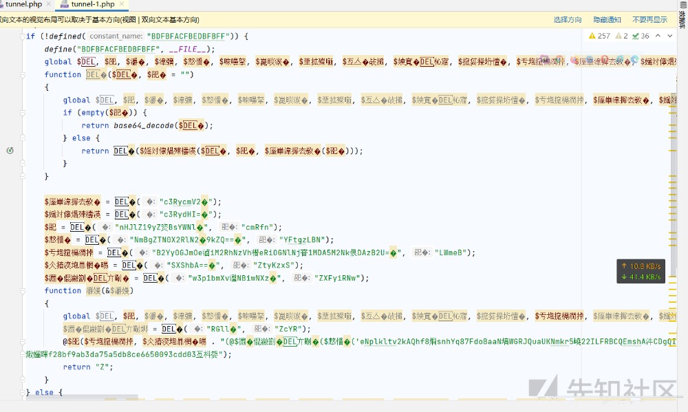 手工解密看到这种的php不要慌 这种处理后的文件 解密流程的变量和函数名使用了大量的非打印字符 按照正常的流程就可以 ctrl+alt+l 快捷键 格式化代码 (这里使用的PhpStorm 其他IDE 格式化遇到特殊符号可能出问题 这里提前调整好了文件编码)。