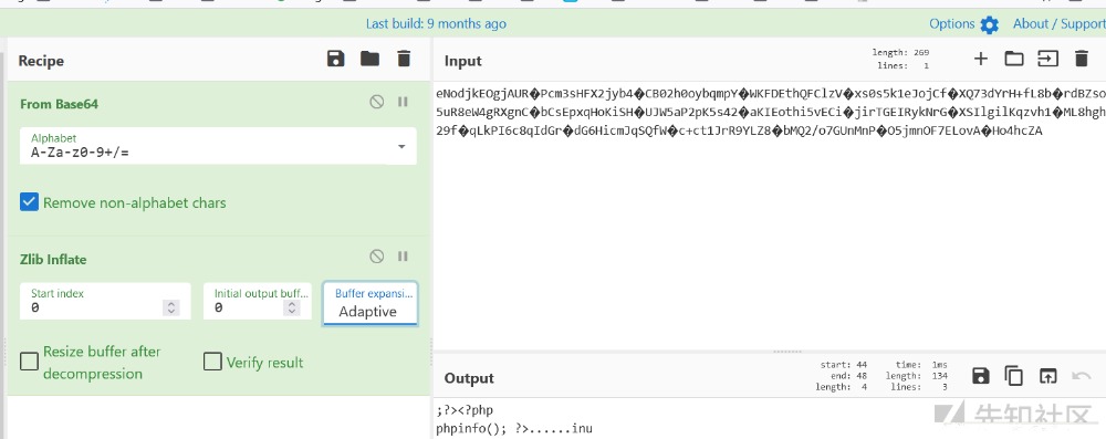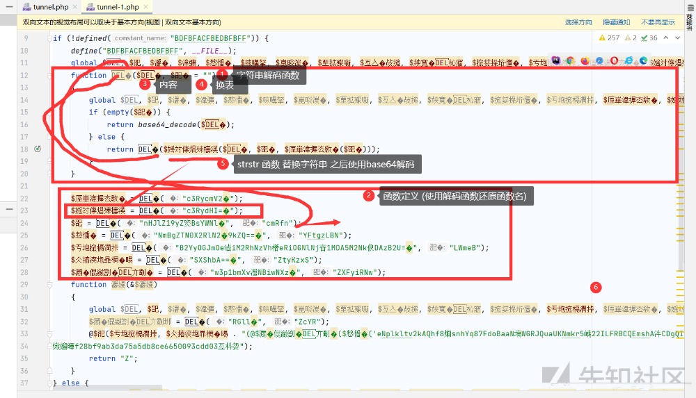 这里有一个php的特性 php中的base64遇到非base64表中字符会直接忽略 不会影响解码。 注: PHP7 遇到空字符可能会抛出error 可以使用php5.6执行 (这里有一个兼容性问题 )。 遇到这种加密最简单的方法就是找文件中最后一步执行的函数 直接把内容打印出来。 这种编码方法最后一步肯定要使用eval执行还原后的php代码 所以打印最后一个函数基本上php代码就会全部出来 (x 前面操作一大顿毫无卵用)。 注: 有保护方案也使用了call_user_func或call_user_func_array间接调用eval。