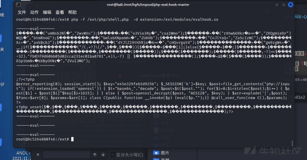 成功还原源代码 <?php phpinfo();?> 自动化通用解密PHP提供了强大的扩展功能 可以直接通过编写php扩展hook eval相关函数 获取执行的源代码。 HOOK php zend引擎的 zend_compile_string zend_include_or_eval 函数达到目的。 这里演示的是 hook zend_compile_string 函数。