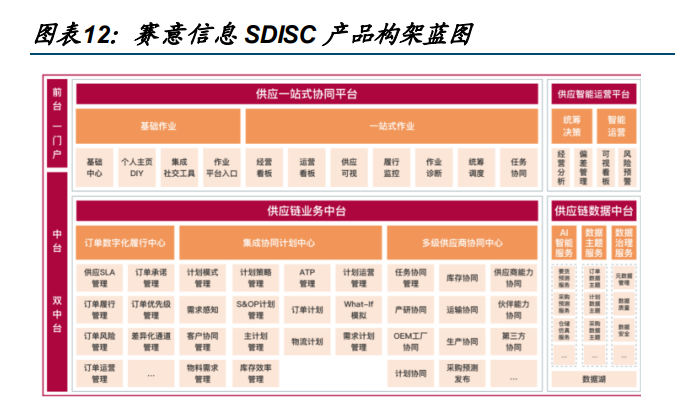 风险预警方面,Dynamics 365 Supply Chain Management 中的 Copilot 能主动为天气、财务或者地理环境等存在影响供应链流程风险的事件发出预警,随后预测筛选出受影响的订单,并将物料、库存、承运商、配送网络等信息一一呈现,同时自动向受影响合作方发送邮件预警,提醒防范可能出现的破坏性影响。 海外一级案例:VC 入局 AI+供应链管理,RPA 加持助推全流程数智化转型 硅谷头部 VC 机构 Ycombinator 于 2023 冬季孵化营在供应链管理方向将目光对准包括 Double、Squack、Lasso 等在内的 5 家初创公司,基于其在“供应链+RPA”领域将 AI 技术与公司产品业务紧密结合,得到了 Ycombinator 的重点关注和投资认可,标志着其有望成为着最前沿的 AI 创业方向。 有望受益:赛意信息,SDISC 提供行业领先供应链管理解决方案 AI+供应链管理场景不断深化,赛意信息有望借助 SDISC 平台持续受益。日前,赛意发布的 SDISC 数字化集成供应链产品,围绕集成供应、生态协同、数字运营三条主线构建的数字化供应链体系,针对订单履行、集成计划、供应商协同、供应链运营四大核心业务场景提供行业领先的解决方案。帮助企业建立以客户为中心的主动型供应链,实现供应生态完美协同,以数字驱动打造供应链运营新模式,实现最优成本和最佳供应效率。作为国内智能制造、泛 ERP 等领域的顶尖厂商,赛意信息一直致力于制造业供应链数智 化管理领域的探索,凭借多年的业界经验积累和与华为云数字化转型的优先实践合作,牢牢掌握智能供应链场景的前进方向。在未来,赛意有望搭乘 AI 技术高速发展的快车,于供应链数智化管理领域持续受益。