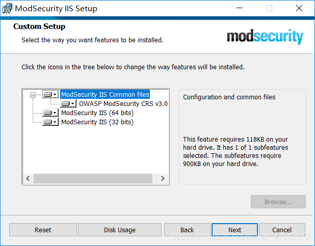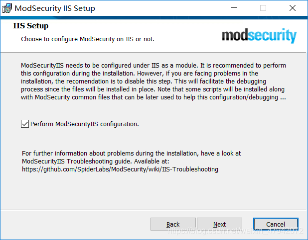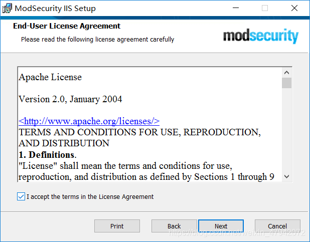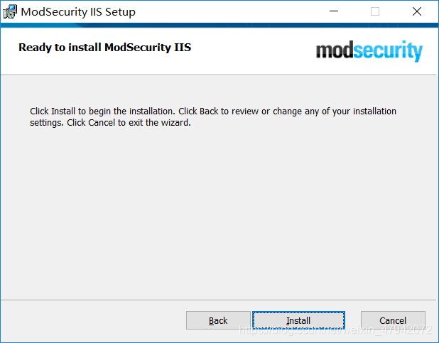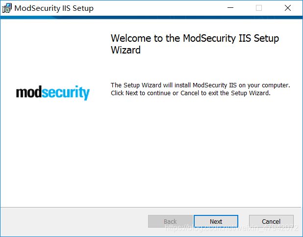 二、安装ModSecurity 按照操作系统下载对应的ModSecurityIIS,点击此处下载32位ModSecurityIIS,点击此处下载64位ModSecurityIIS,下载后复制到服务器内,直接安装即可。