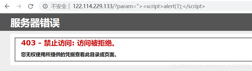 四、测试防御效果 访问http://服务器IP或域名/?param=%22%3E%3Cscript%3Ealert(1);%3C/script%3E,查看防御效果。