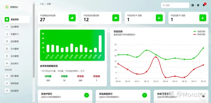 HTTPWAF主页:https://github.com/httpwaf/httpwaf2.0 HTTPWAF 官方号称是一款真正有 web 管理后台,并且永久免费的 web 应用防火墙,既支持直接部署在 WEB 服务器上,又可以独立部署保护后端服务器。在免费 WAF 界算是功能很丰富的项目,基础检测能力还可以,缺乏对抗高强度攻击的能力。作为免费产品,源码、文档、安装包均没有公开提供,要加微信获取。 ![]()