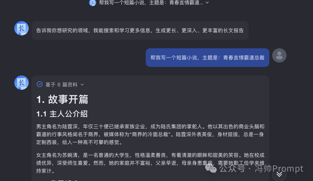 告诉它大纲没问题,生成详细内容: