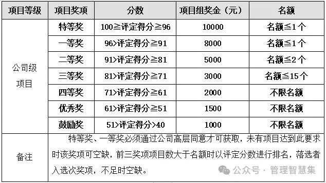 第一章:前言 本规定适用于公司范围内所有项目的申报、立项、实施、验收、评估、奖励及培训等管理的工作。 本标准适用于公司内部各类自动化、非自动化项目工作的运作管理。 第二章:定义 第一条:项目:是指团队或个人为创造具有创新性的产品或服务而进行的并能为公司带来经济效益的一次性工作。包括但不仅限于: 1、产品开发项目:公司内部的全新产品。 2、技术研究项目:新技术、新工艺的研究,对现有产品的设计改进,以及新技术、新工艺的推广应用的项目。 3、工艺技术项目:通过工艺和设备的设计与改造,以达到提高生产速度及效益目的的项目。 4、管理技术项目:通过推进基础管理以降低成本、提高公司运作效率的项目。包括:质量控制技术、标准化技术、产品认证、项目管理、人力资源管理、计算机管理系统以及相关基础研究的项目。 第二条:项目按公司级(A、B、C类)项目进行分级管理:A(独自创新型)、B(改良引入型)、C(改善推广型)。 第三章:职责 第一条:工艺部 1、负责对申报项目的汇总、类型判定及可实施性和报告表格格式复审。 2、负责制定各类项目报表,跟踪实施情况;并对实施过程中难点予以指导和攻关。3.负责监督各单位项目情况;负责优秀项目的汇总,并组织人员发表。 4、负责对项目进行核实、复核,并根据奖励方案予以奖励。 5、负责对项目评审过程全程跟进,对于延期项目及未按进度完成的单位予以通报、考核并验证其整改。 6、负责组织对口单位对反馈有异议的项目的复核结果,进行讨论及判定最终结果。 第二条:财务部 1、财务部负责对项目实施的整个过程进行监督和审计,有权统筹各单位进行审计;并负责对已结题的项目进行核算经济效益。 2、负责在项目评审时对于项目经济效益和成本核算方式给予评审意见;对各单位提供数据的真实性进行监督和反馈,对项目有形经济效益核算结果享有决定权并负责。 第三条:各项目申报单位 1、必须对一切涉及项目评审、核算的资料(包括数据、图片、工艺文件等)进行搜集和存档,并对数据的真实性、完整性和准确性负责;各单位有权在项目评审过程中发表参考性意见。 2、负责统筹项目实施过程中涉及的设备等资产的申购、验收、管理等工作,待项目结题后转移至所在部门;涉及同型号设备的推广使用,由需求单位直接提单申购。 第四条:评审人员组成与职责 1、评审人员组成:工艺部、财务部以及相关单位的专业人员,其中财务部、质量部、生产部评委为常务评委,各项目负责人为参评人员。 2、无条件配合工艺部的组织参与各项目的评审工作,负责根据项目内容及相关要求,评审项目的可行性及其相应类别。 3、对项目评审工作提出意见和建议,监督项目评审工作的开展;研究和解决项目评审工作中出现的异常问题。 4、参评项目相关资料不得复印,不能传给他人,只能在专业评审人员之间传阅,资料不得随意放置;专业评审人员要站在公司立场,公平、客观的看待问题,避免出现评判偏颇;每位专业评审人员都应从公司利益的角度,对评审过程的细节和参评项目的技术内容严格保守秘密。 第五条:各单位项目管理员职责 1、负责本单位项目的汇总、实施性和申报初审、培训以及实施过程的进度反馈和监督、实施效果确认;负责协助工艺部项目管理员进行项目实施效果的核查;负责落实工艺部安排的其他有关项目。 2、负责协助本单位项目负责人召开本单位项目“项目方案评审会议”,并督促项目负责人输出项目方案评审会会议纪要,完成《项目申报表》的编制工作 3、由于本单位工作的需要,对项目进行调整的,负责填写《项目调整单》并提前7个工作日备案至工艺部。 4、新任项目管理员须经过工艺部对其相关工作内容验收合格后方可正式上岗,不合格的项目管理员可通过复试验收,依然不合格时其所在单位将不能参与年终所有评优工作。 第四章:项目来源 第一条:公司决策层下达:公司高层根据市场调查、预测以及企业发展要求,将项目下达相关部门。 第二条:部门规划:部门根据部门工作要求,提出项目。 第三条:个人提出:公司员工提出符合公司发展要求的建议,并提出项目。 第五章:项目编号规则 第一条:编号标准格式 第二条:编号定义 第六章:项目负责单位的认定 第一条:公司决策层下达任务时已明确项目负责单位,该单位即为项目责任单位。 第二条:一般采取项目改善内容的主要责任单位为项目负责单位。 第三条:未明确负责单位或相关单位与项目关系难以明确主次要责任时,原则上项目负责人所在单位为该项目的负责单位。 第四条:存在较大争议的项目,则按照项目提出人、项目负责人所在单位为该项目的共同负责单位。 第五条:各单位在申请立项前,需联合相关单位对项目内容及可行性进行讨论论证,在立项时必须出具相关的论证性内容资料。 第七章:项目范围 第一条:产品质量和工艺的改善。 第二条:提高生产效率,优化现场、物流类的改善。 第三条:改进设备、工装工具的设计、制造与维护保养。 第四条:物料仓储管理及厂内外运输搬运方法的改善。 第五条:呆滞物料、废料的利用、原料的节省及其他降低材料成本的改善。 第六条:加工不良及降低生产成本费用的改善。 第七条:工作安全的改善。 第八条:防止灾害危险的方法改善。 第九条:工作环境与卫生